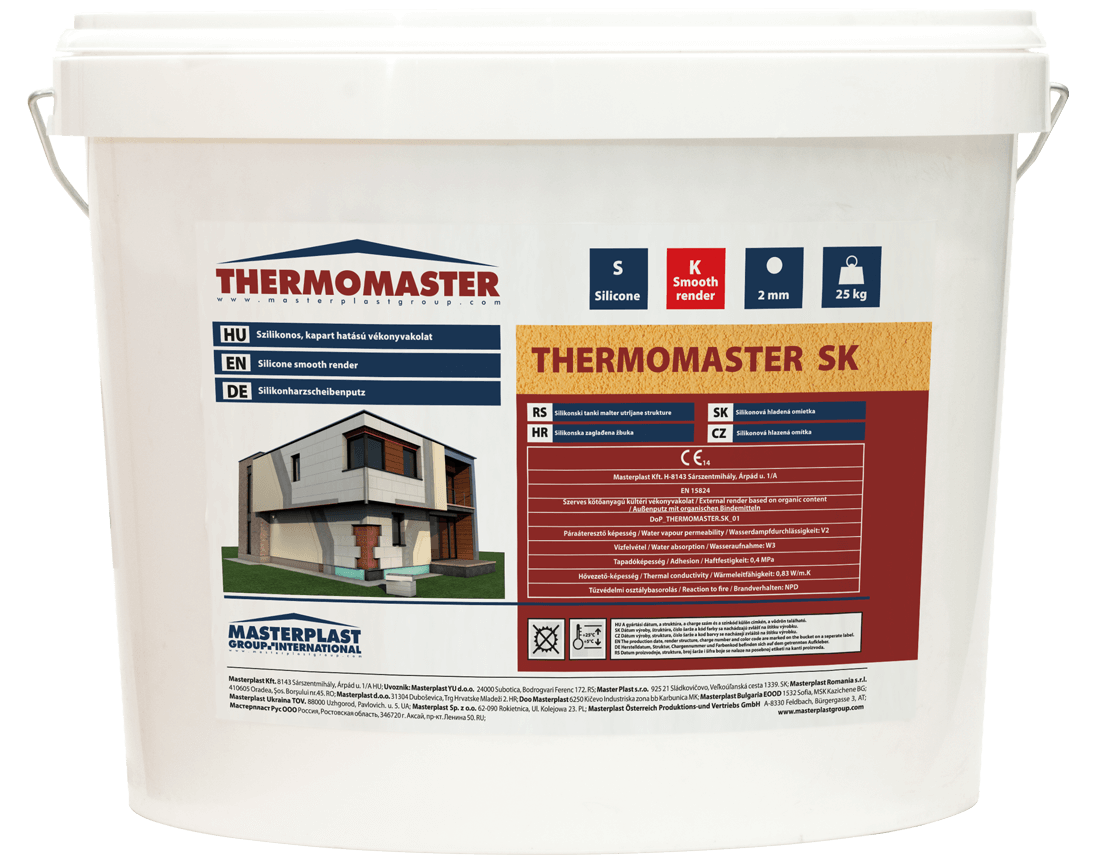 Szilikonos (S), kapart hatású (K) vagy gördülőszemcsés (G) vékonyvakolat; 1,5 vagy 2 mm szemcsenagysággal.